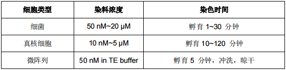 注意:我们推荐的染料工作浓度是基于已有文献与自身实验室经验,客户应根据具体的细胞类型和实验系统对染料的最佳工作浓度进行优化。